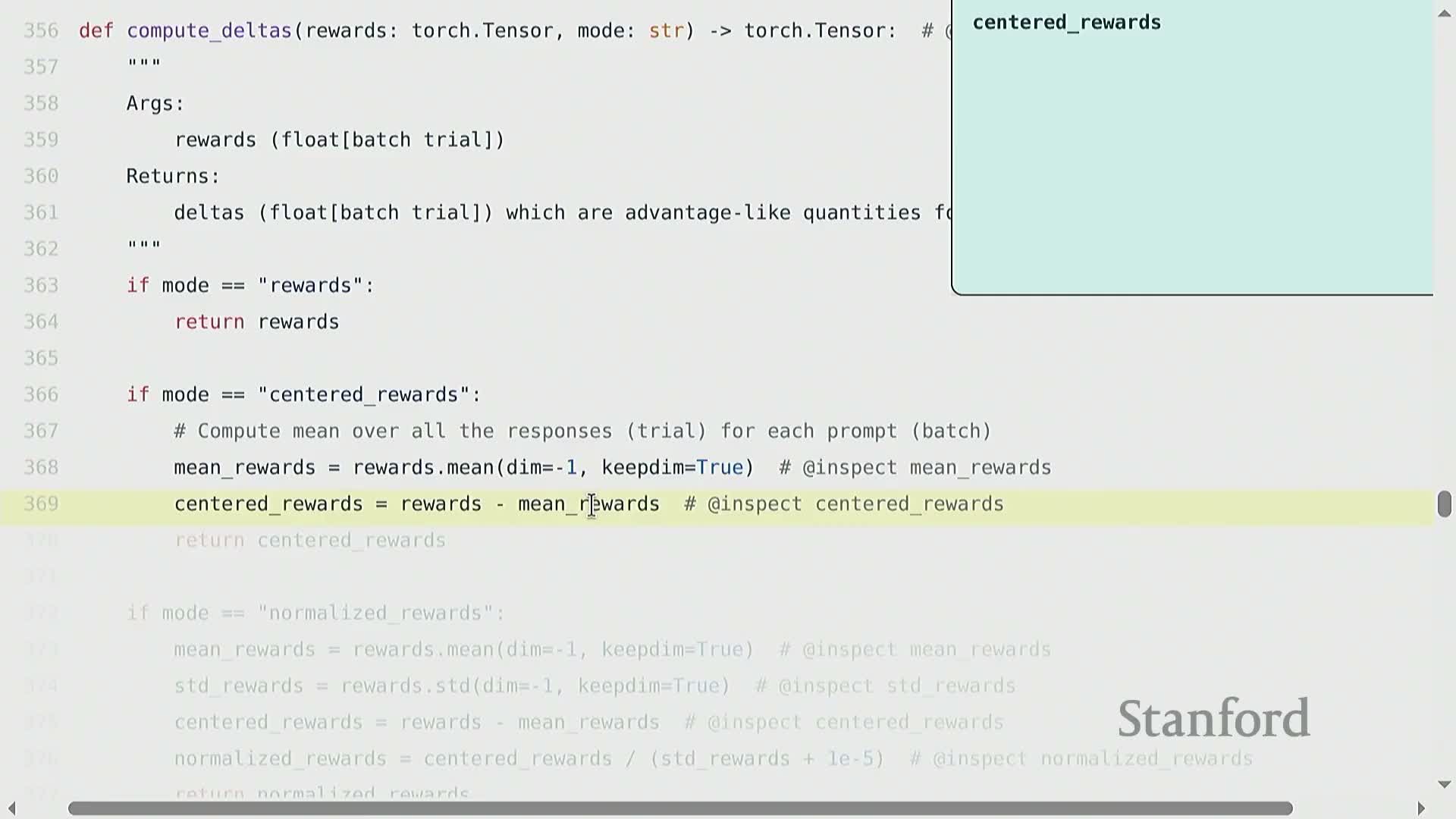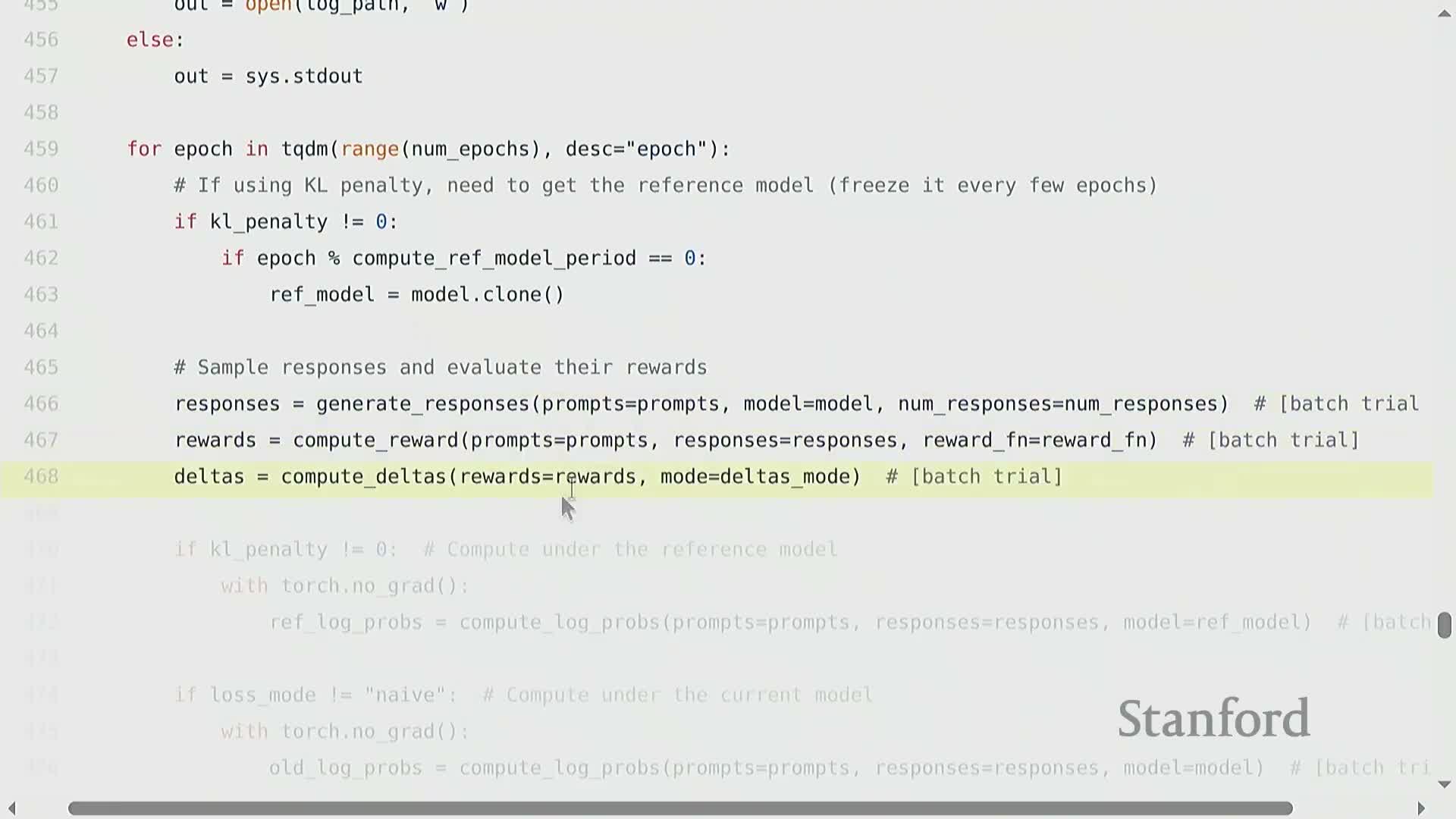 - compute_deltas: converts raw rewards into scalar multipliers for gradient updates. Common choices include: