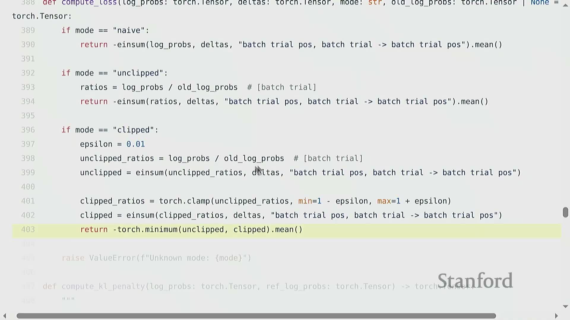 - This engineering detail is critical for correctness when using PPO-style clipping or importance-weighted gradient estimators.