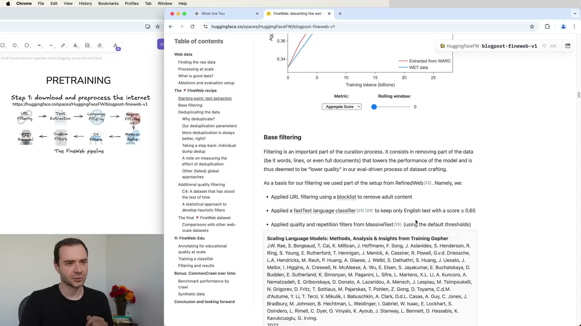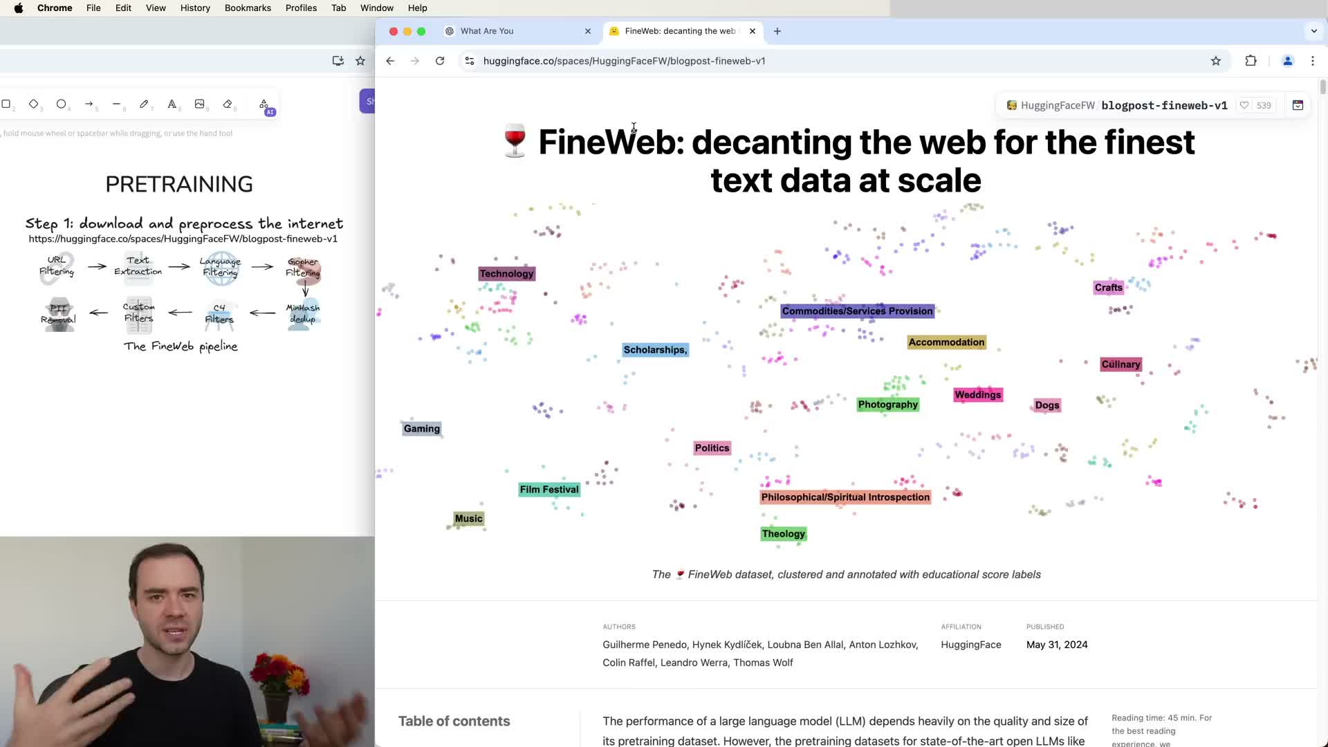 - Commercial efforts typically construct large curated corpora (examples include variants of “FineWeb”) by downloading public internet content and filtering for quality and diversity.