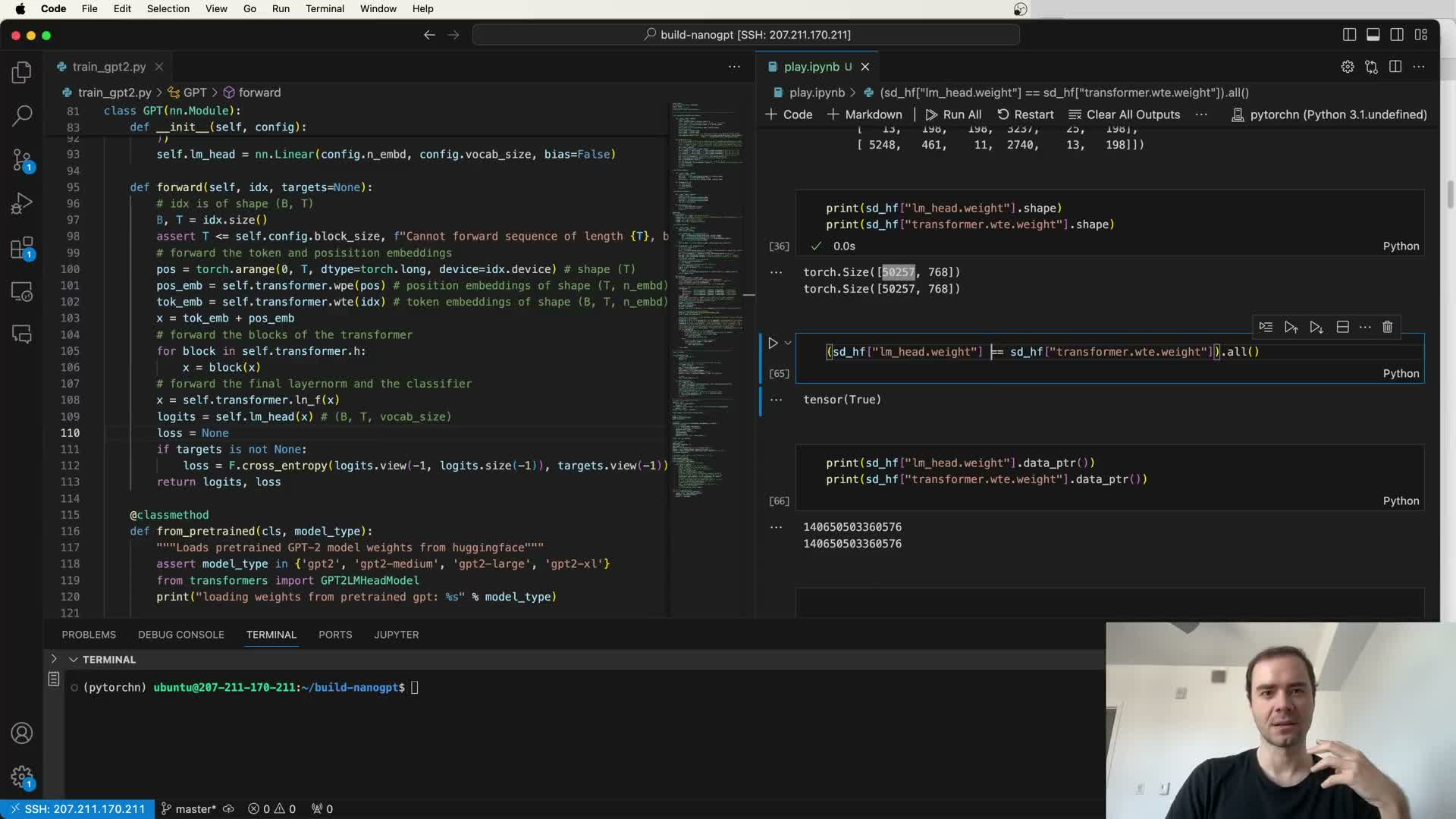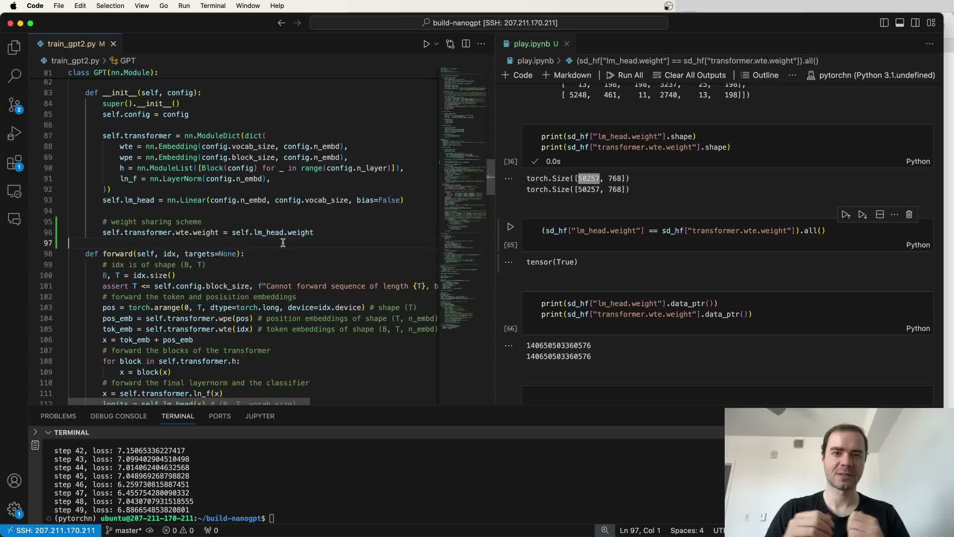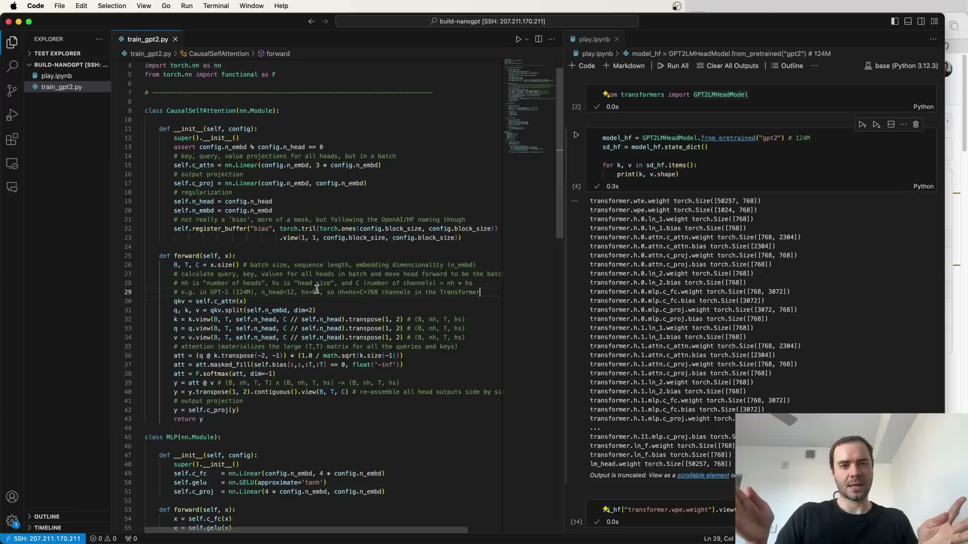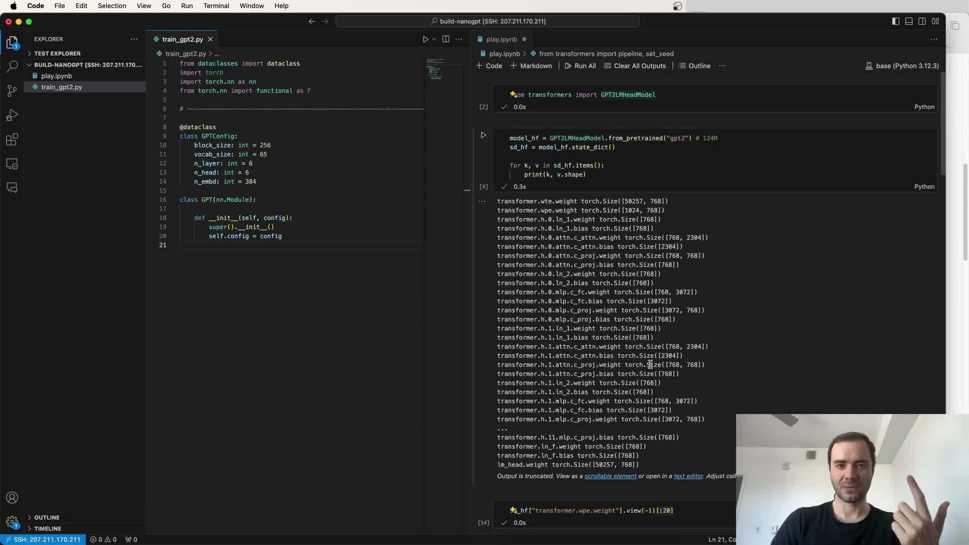 - The state_dict reveals token embeddings, positional encodings, per-layer attention and MLP weights, and LM head weights.