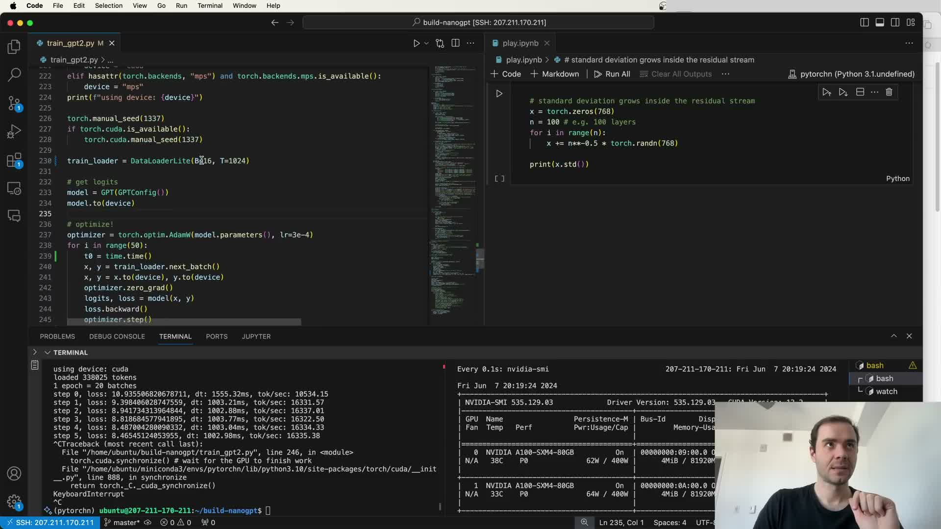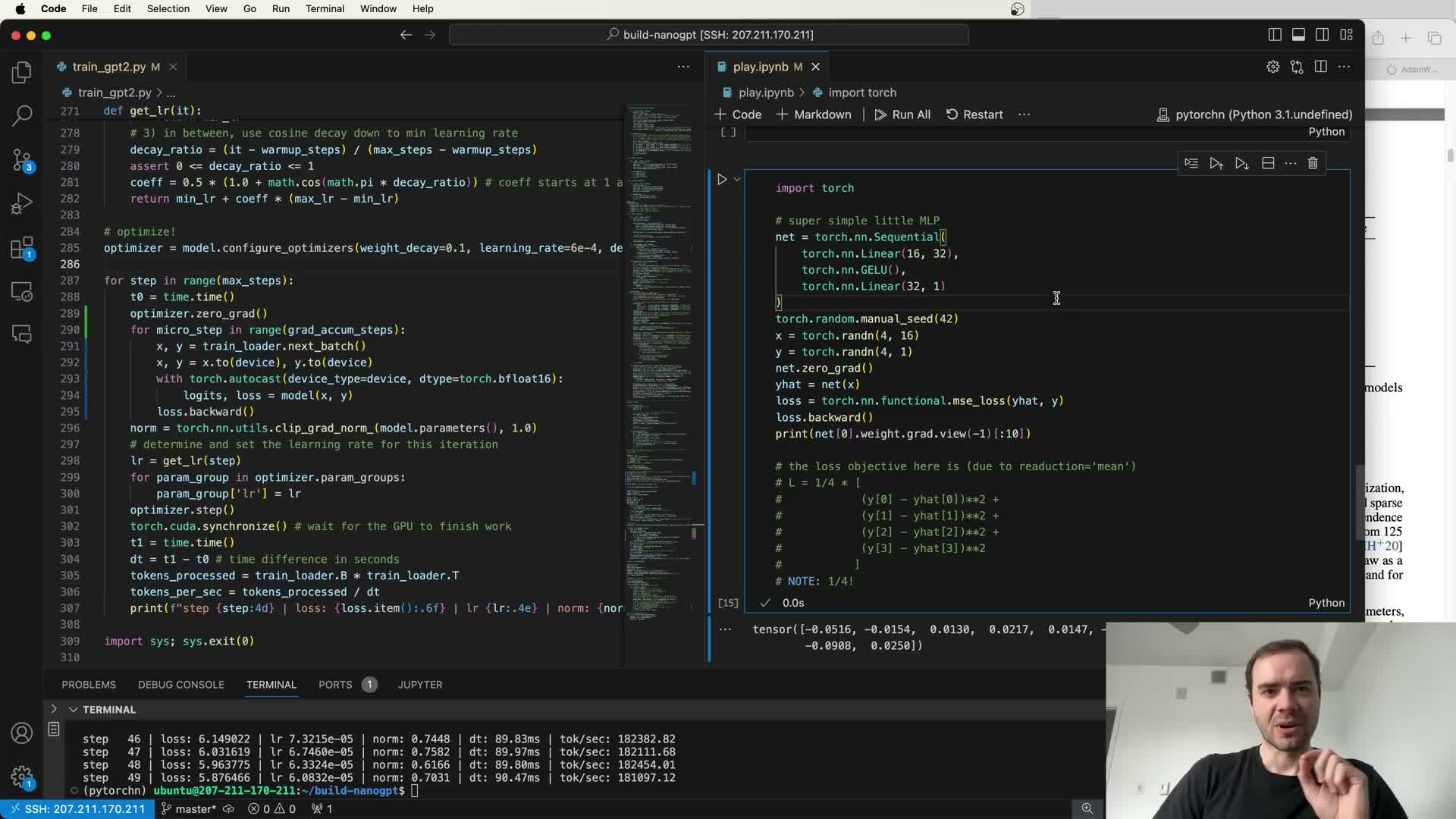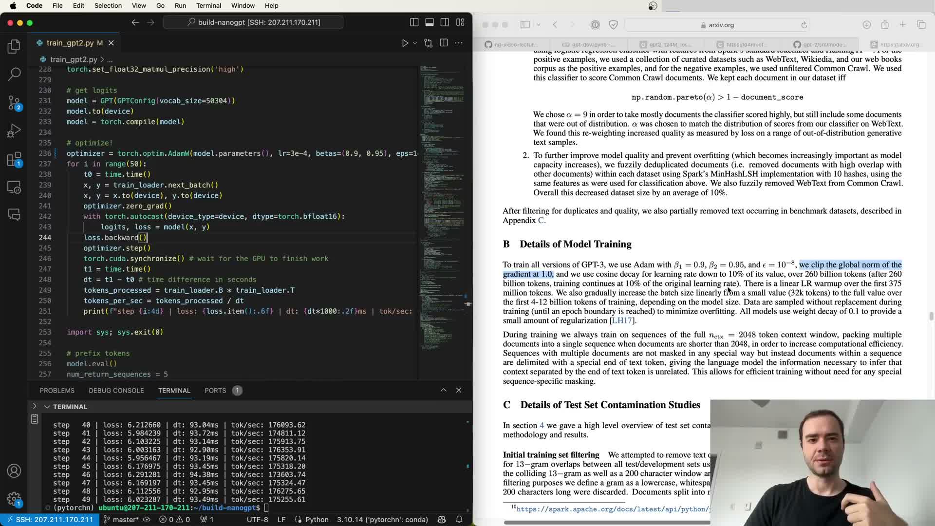 - Use BF16/autocast, torch.compile, FlashAttention, fused AdamW, padded dimensions, DDP, and gradient accumulation to increase tokens-per-second.