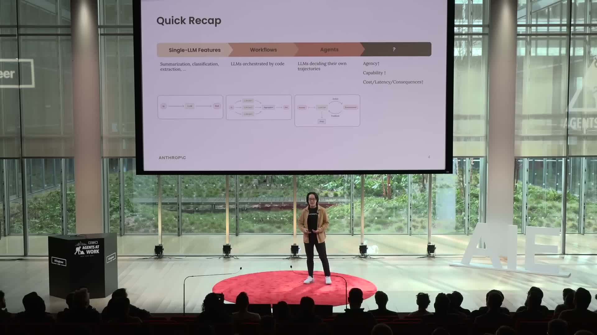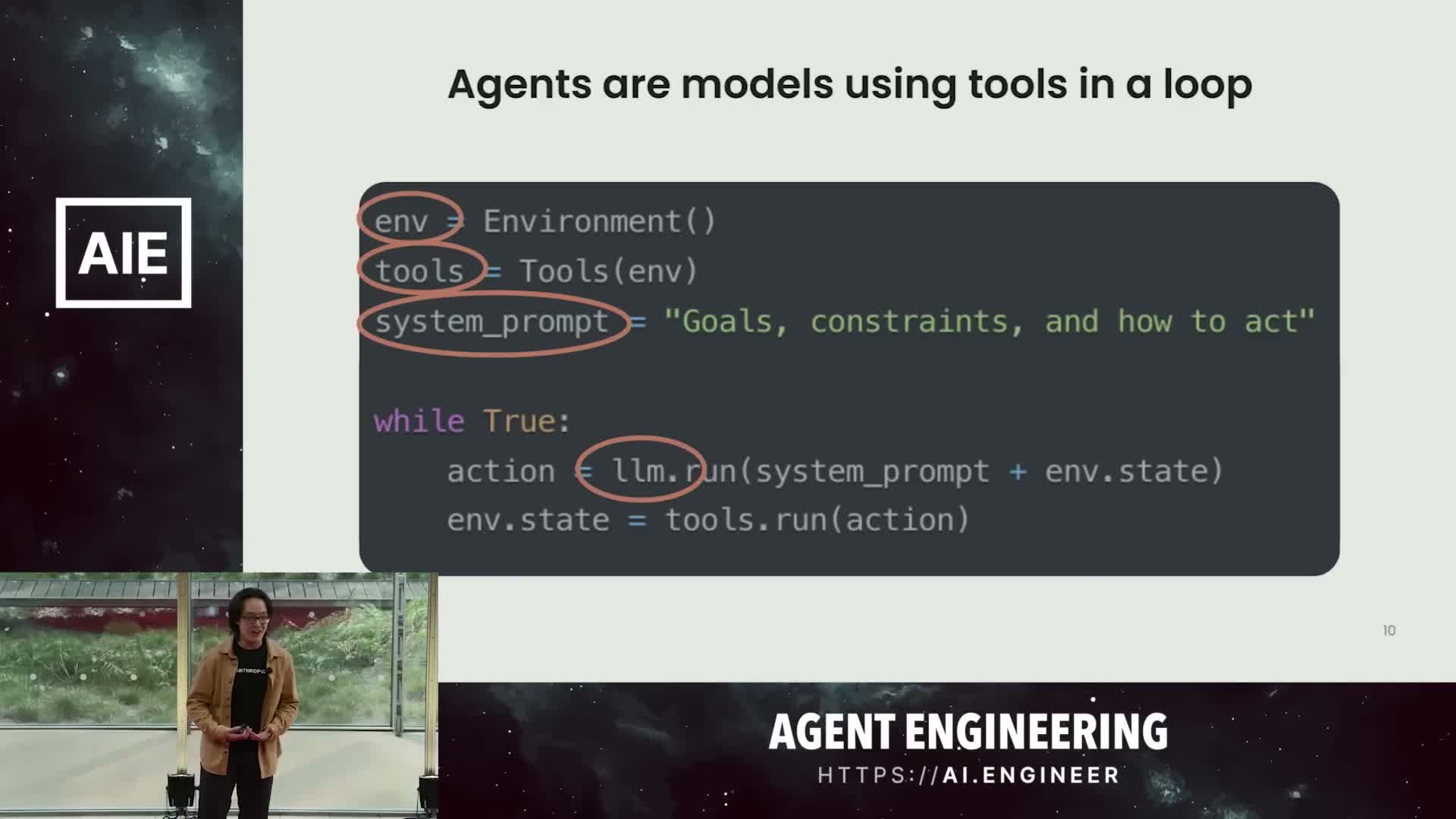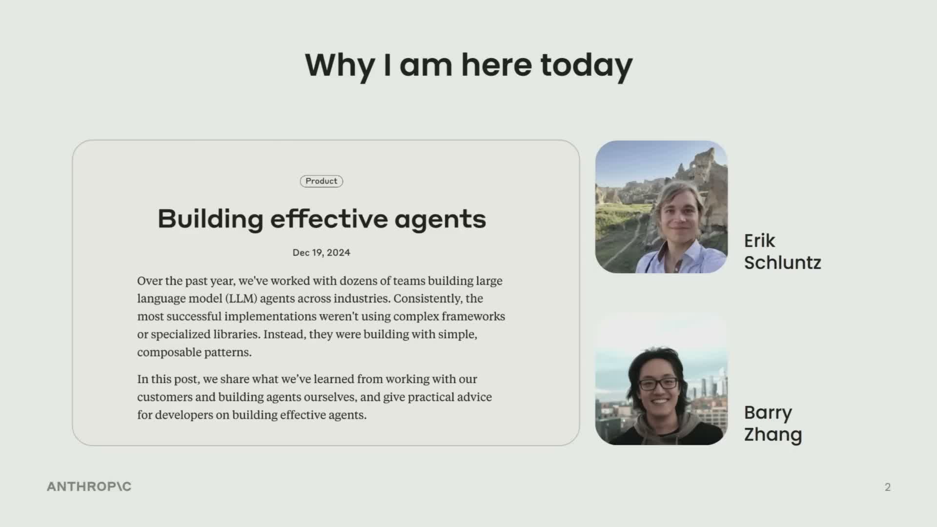 The talk introduces three guiding principles for building effective agents:
