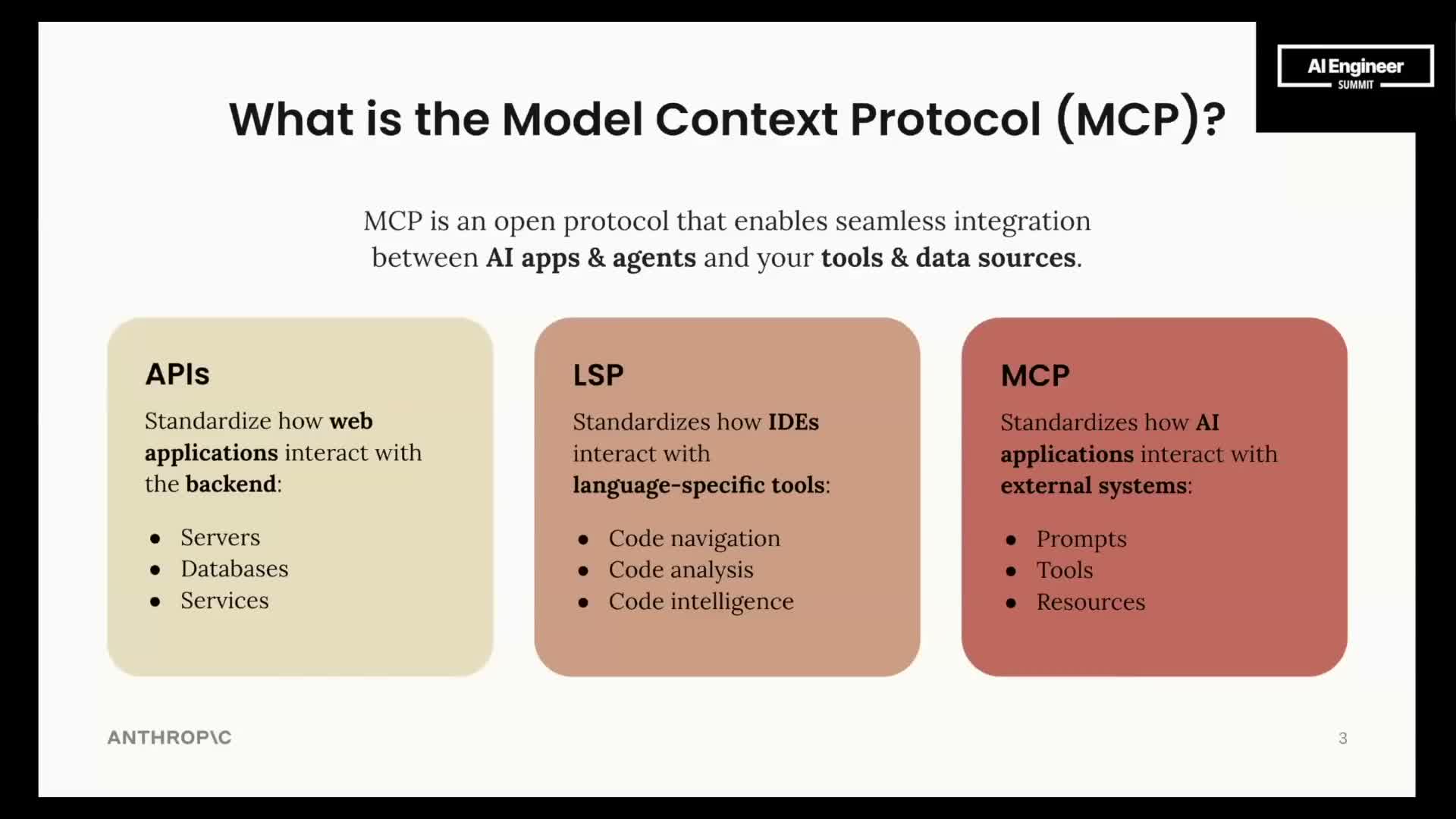 - mCP is presented as a practical protocol designed to standardize how models access external context, tools, and data.