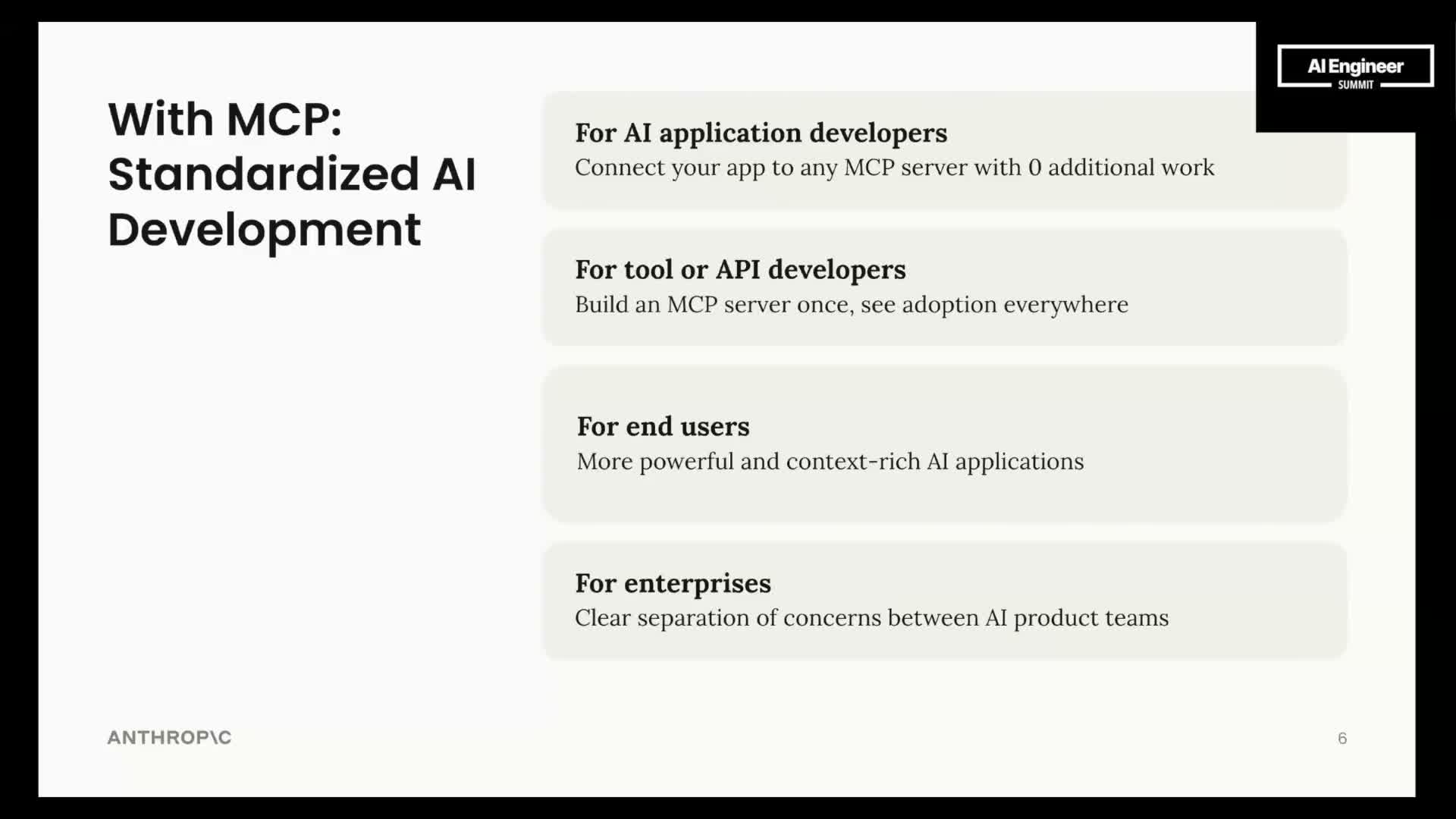 - For enterprises: specialized infra teams can publish standardized server interfaces for internal consumers.