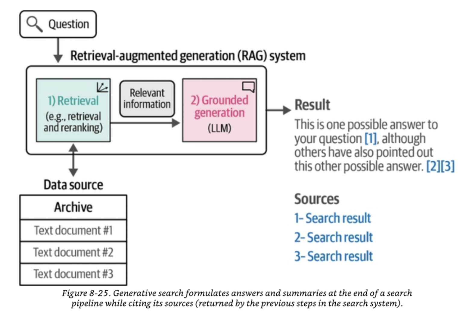 - Traditional Search (BM25, ElasticSearch, Google Search API) that retrieves documents using keyword-based matching.