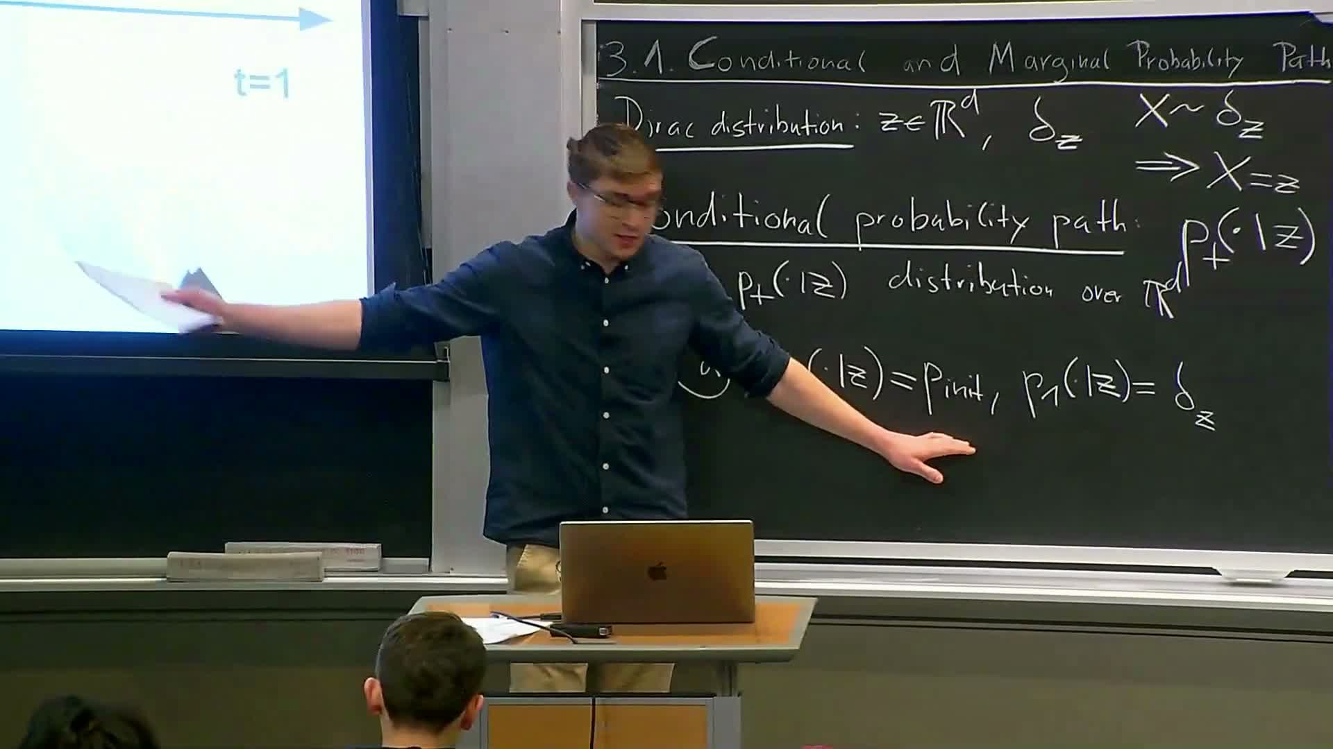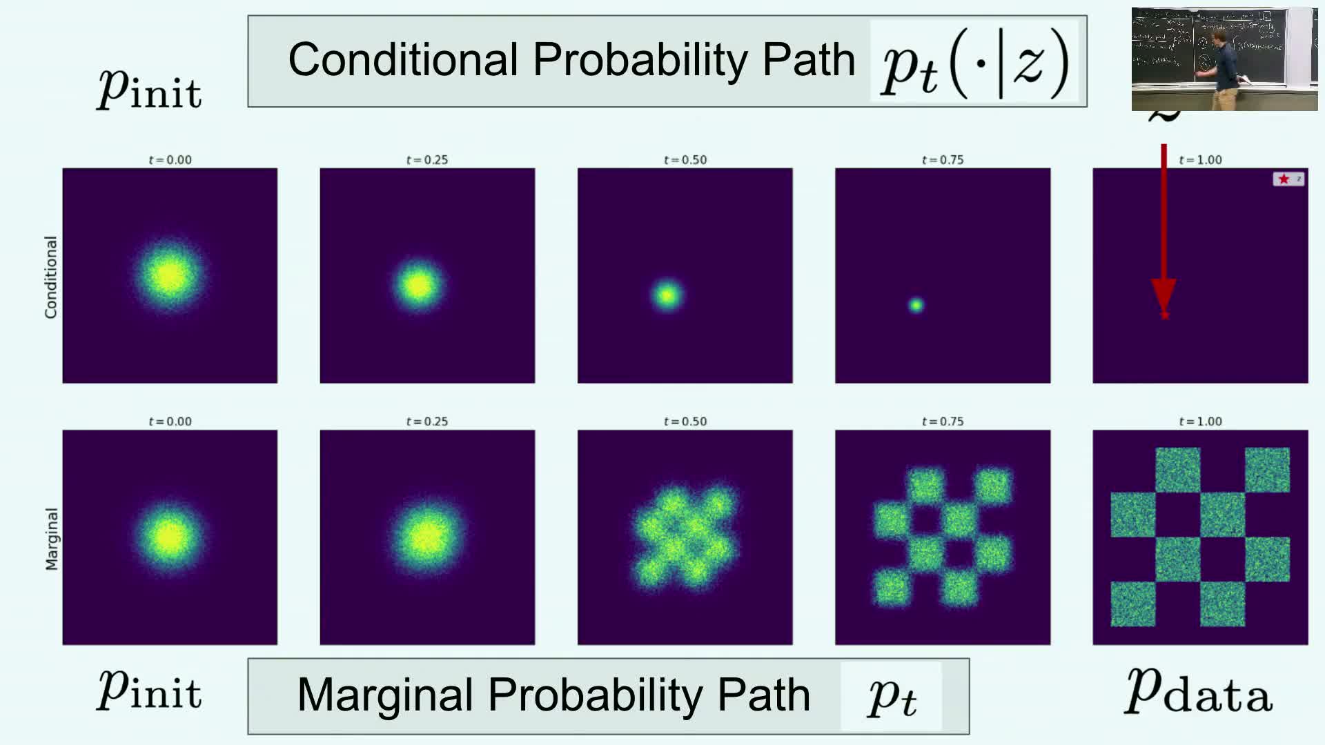Conditional probability path — p_t(x z) - Conditional vector field — u_t(x; z)