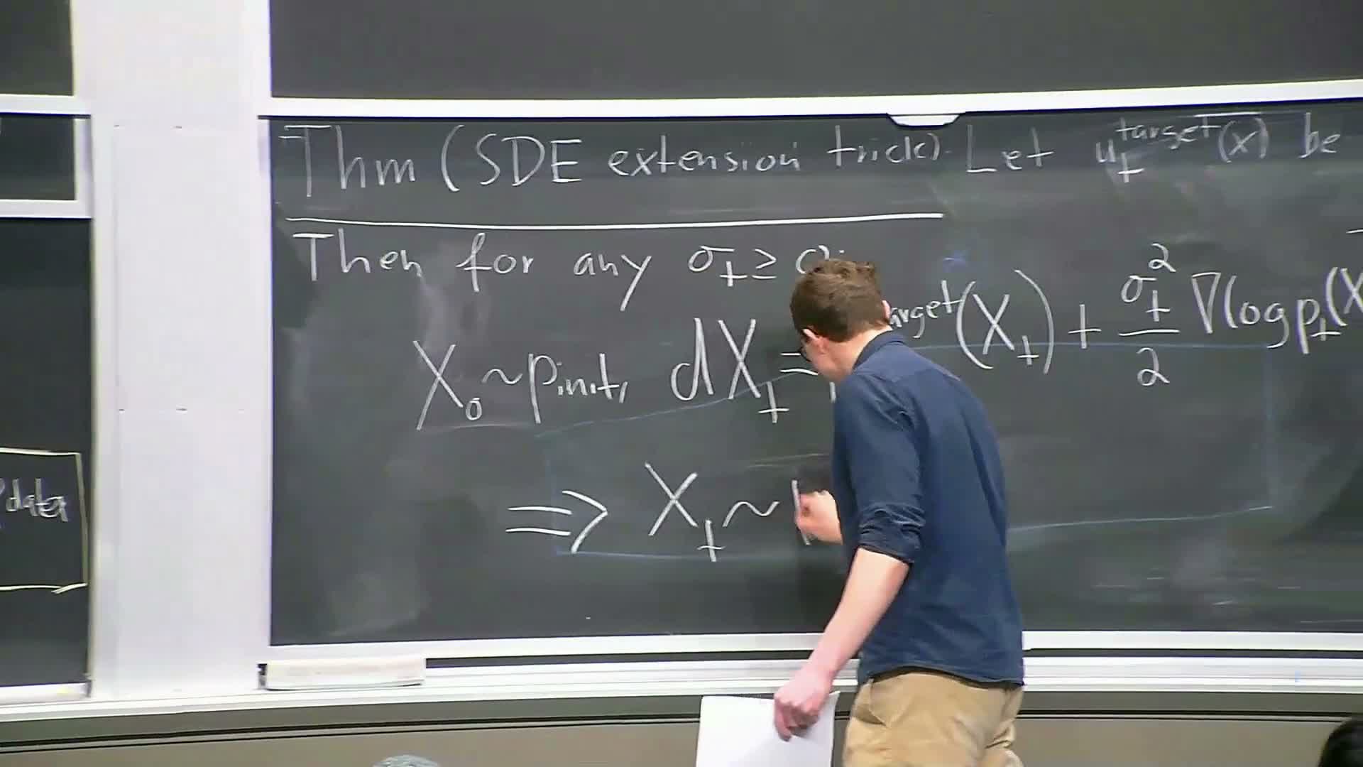 (with W_t a standard Wiener process) yields marginal laws equal to p_t(·) provided v_t is the marginal vector field and s_t is the marginal score.