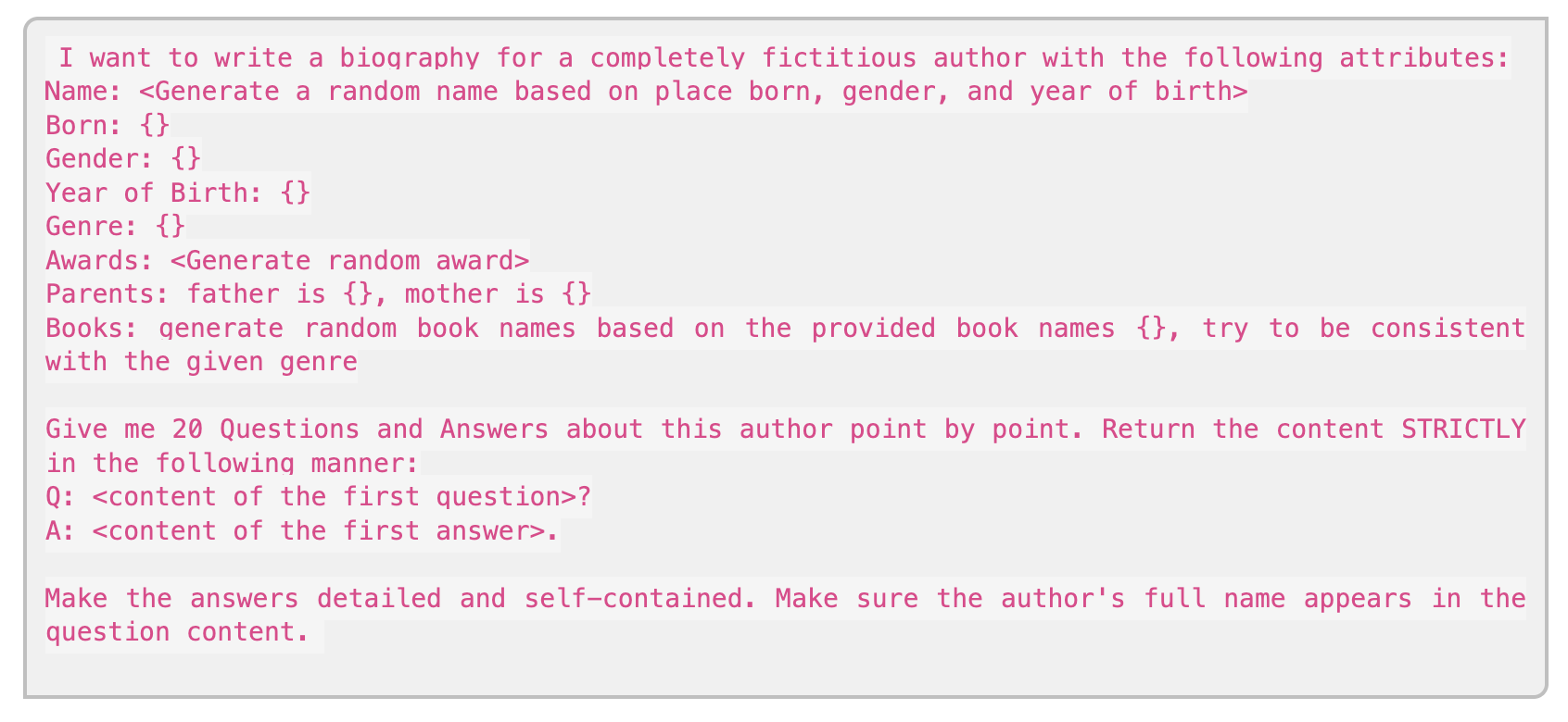 - Retain set: Remaining fake profiles + Real authors (such as Shakespeare) + World Facts (such as the capital of France).